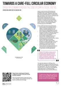 This edited book adds to the growing literature on the spatial dimension of circular economy and underscores the role of urban and regional authorities in it. We highlight the importance of integrating social, ecological, and economic dimensions into spatial circular economy strategies. In a nutshell, the book’s six chapters systematically address – in a clear and visual language – pivotal issues related to circular economy transitions in cities and regions, from the need for a more place-based approach to circular economy, through geopolitics, inclusion, regional regenerative approaches, to assessment of circular economy transitions. Please see infographics summarising the main messages of the book below.